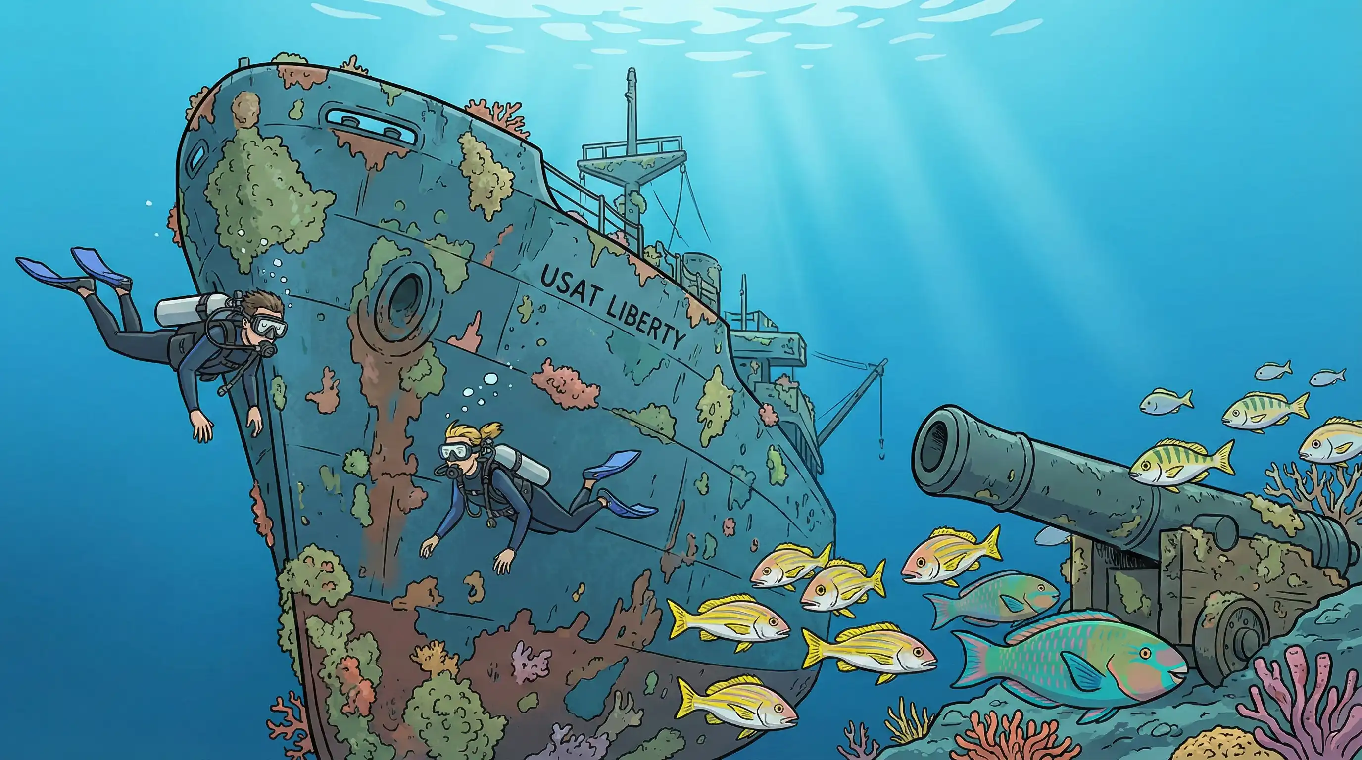 - Wreck dive: Practice navigation and observation around the Libertyâs structure