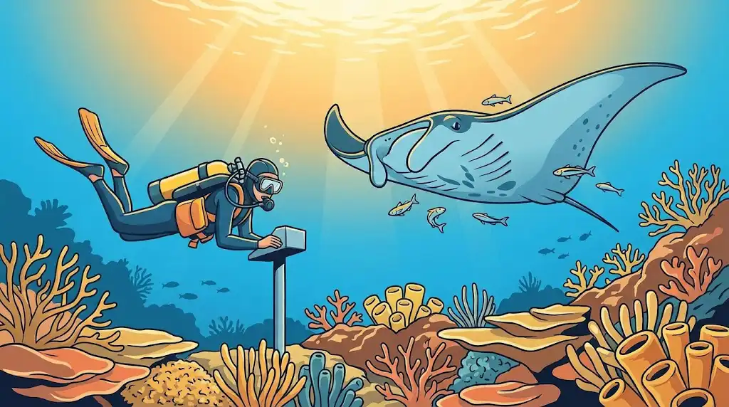 - Manténgase cerca de su SMB durante los ascensos, especialmente en Manta Point y Crystal Bay, donde el tráfico de barcos alcanza su punto álgido a media mañana.